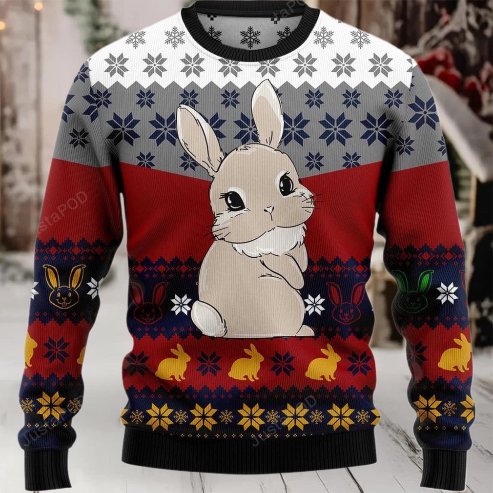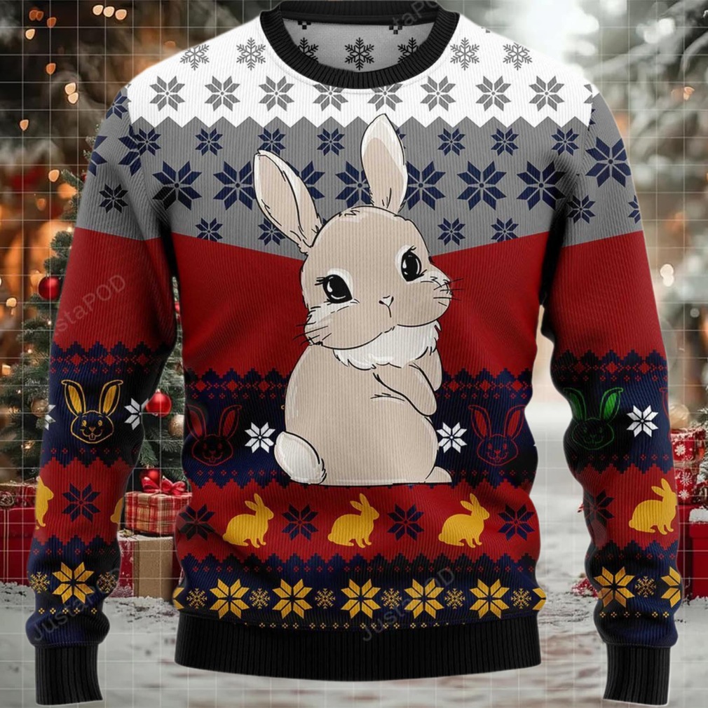This isn’t just any Christmas sweater; it’s a heartwarming tribute to rabbits during the festive season! The delightful design will bring smiles and joy to everyone you meet. Imagine lighting up the room at your next holiday gathering with this charming sweater. This sweater solves the problem of ordinary holiday attire, offering a cute and memorable option for rabbit lovers. Crafted from a soft and comfortable material, it’s ideal for staying cozy and warm throughout the winter. Available in a range of sizes, it guarantees a comfortable and flattering fit for all.