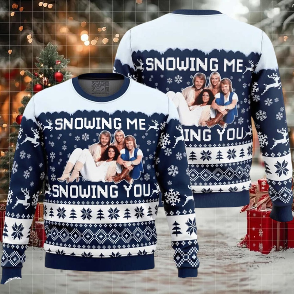 This knitted sweater features a vintage band photo of ABBA, combined with a "Snowing Me Snowing You" theme, creating a unique and eye-catching design. Soft, comfortable, and available in sizes S-5XL, it’s perfect for dancing queens and kings alike. Wear it to your next holiday party, ABBA-themed night, or while watching "Mamma Mia!" for the hundredth time. Get ready to spread some joy and ABBA magic this Christmas!