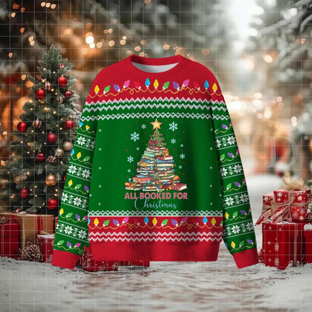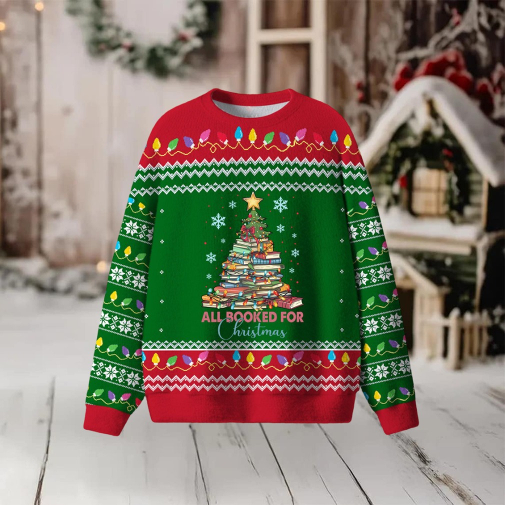 This All Booked For Christmas Ugly Sweater isn’t your grandma’s knitted creation. Think of it as your secret weapon for holiday gatherings. It’s for those who appreciate a clever design that blends the love of reading with Christmas cheer.