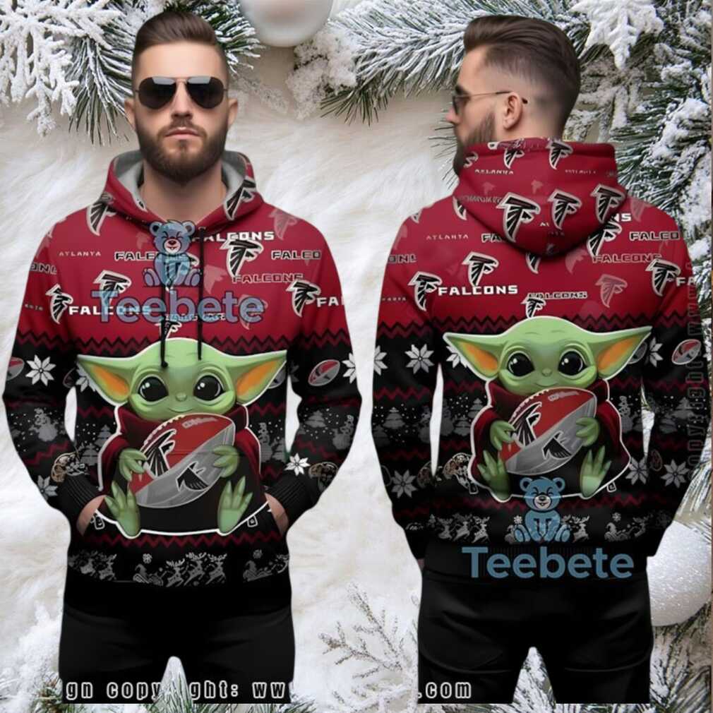 May the Force (and the Falcons) be with you this Christmas! This Atlanta Falcons Baby Yoda Fan Ugly 3D Hoodie Red Holiday combines the spirit of the season with the might of the Falcons and the cuteness of Baby Yoda (Grogu). It’s the perfect way to show off your fandom on game days and during holiday festivities.