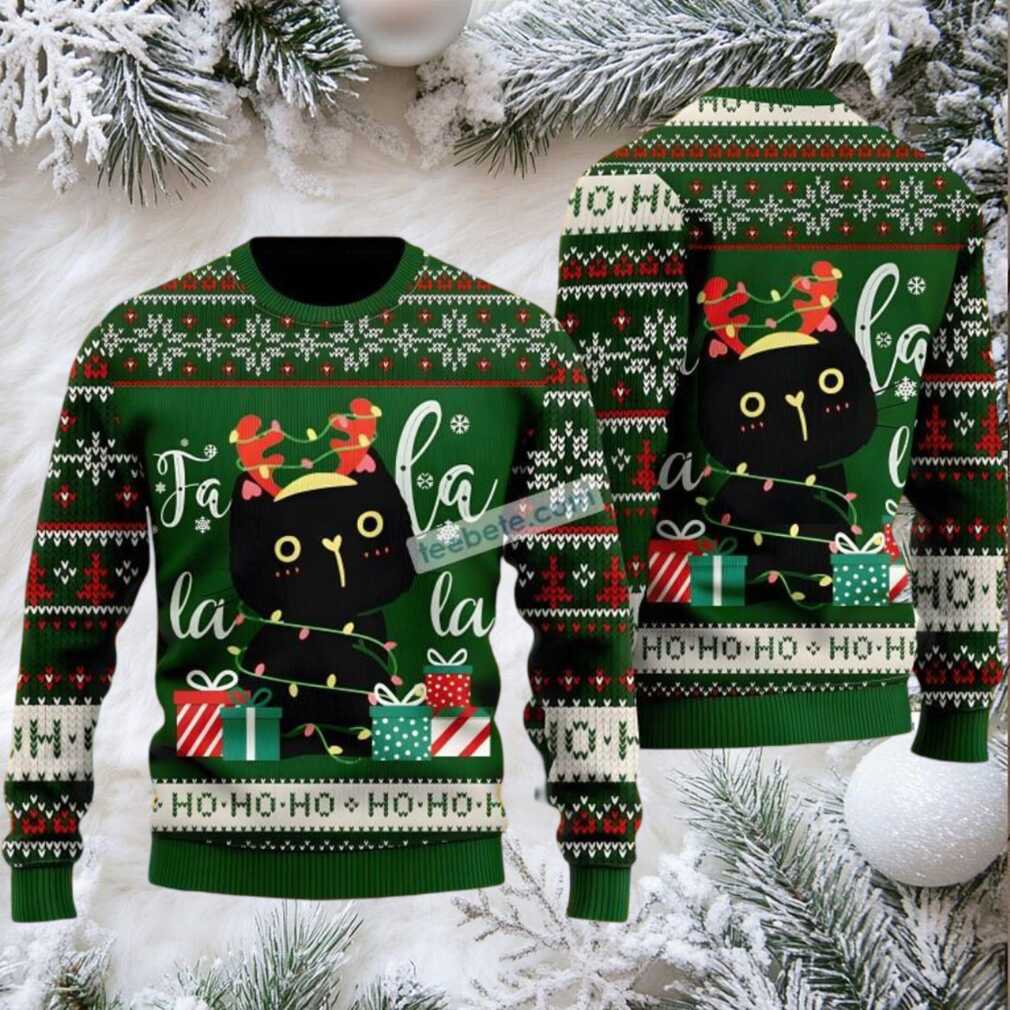 Who Rocks This Black Cat Dad Mom Falalala Cheap Ugly Christmas Sweaters Best