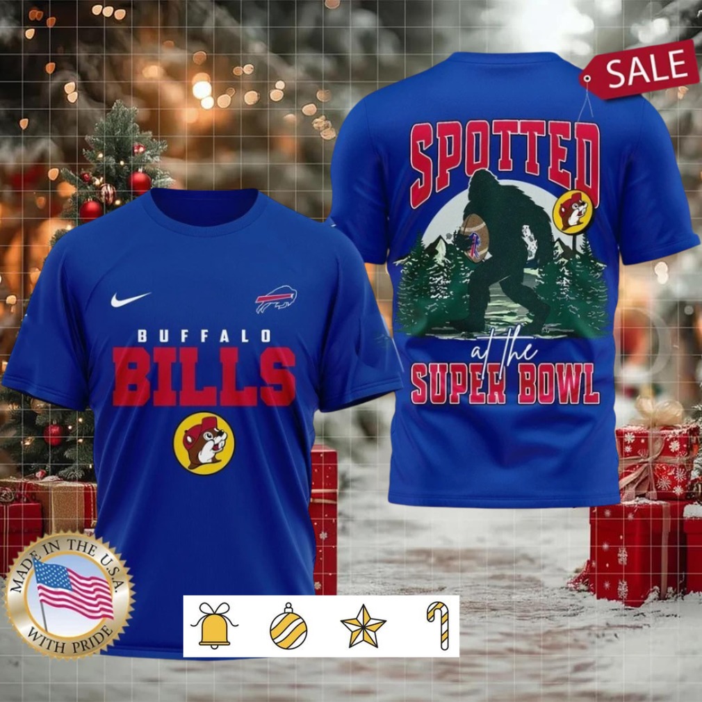 This Buffalo Bills NFL Buc ee’s & Bigfoot Spotted at the Super Bowl shirt is pure, unadulterated fun. Forget those run-of-the-mill Super Bowl victory tees – this one tells a story, a hilarious “what if?” scenario that will have everyone doing a double-take. This shirt solves the problem of boring fan apparel. It’s a statement that you’re a Bills fan with a sense of humor and an appreciation for the bizarre. Whether you’re tailgating in the snow, watching the game from your couch, or hitting up Buc-ee’s for a road trip snack, this shirt is guaranteed to turn heads and spark conversations. Soft, comfortable, and ready for anything, this shirt is available in a range of sizes.
