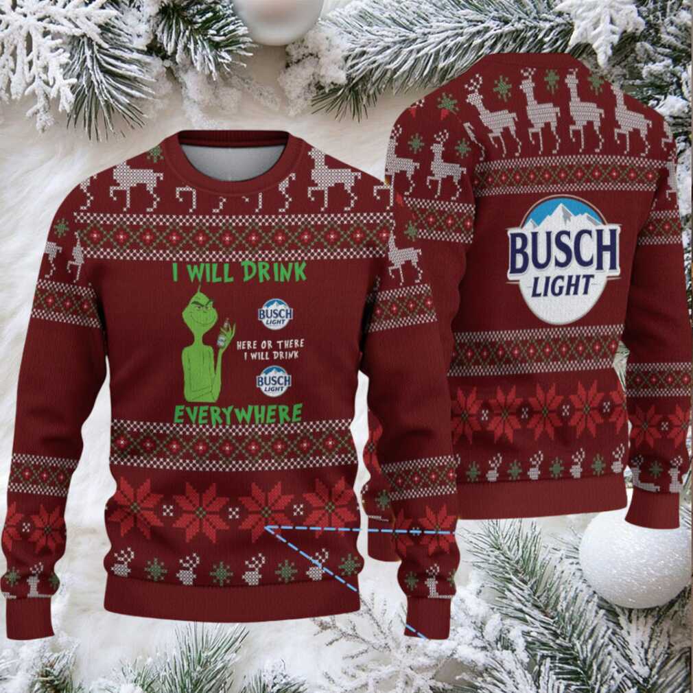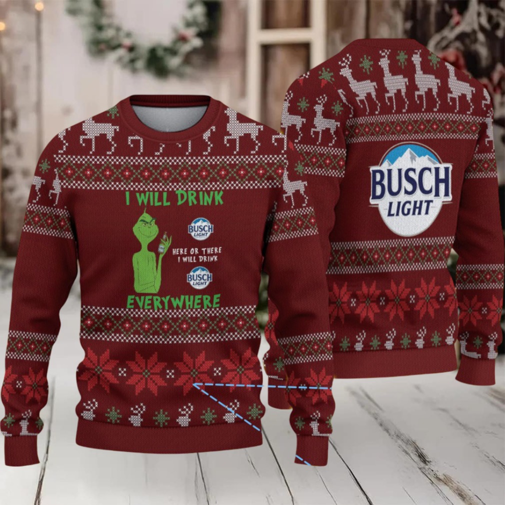 Ready to steal the show at your next holiday gathering? This Burgundy Reindeer & Snowflake Knit “Busch Light Grinch Everywhere” Ugly Christmas Sweater is the perfect blend of festive cheer and mischievous fun. Imagine the looks and laughs as you stroll in, sporting this unique design. It’s not just a sweater; it’s a declaration of your love for Busch Light, the Grinch, and making a statement. Get ready to spread some holiday mayhem!