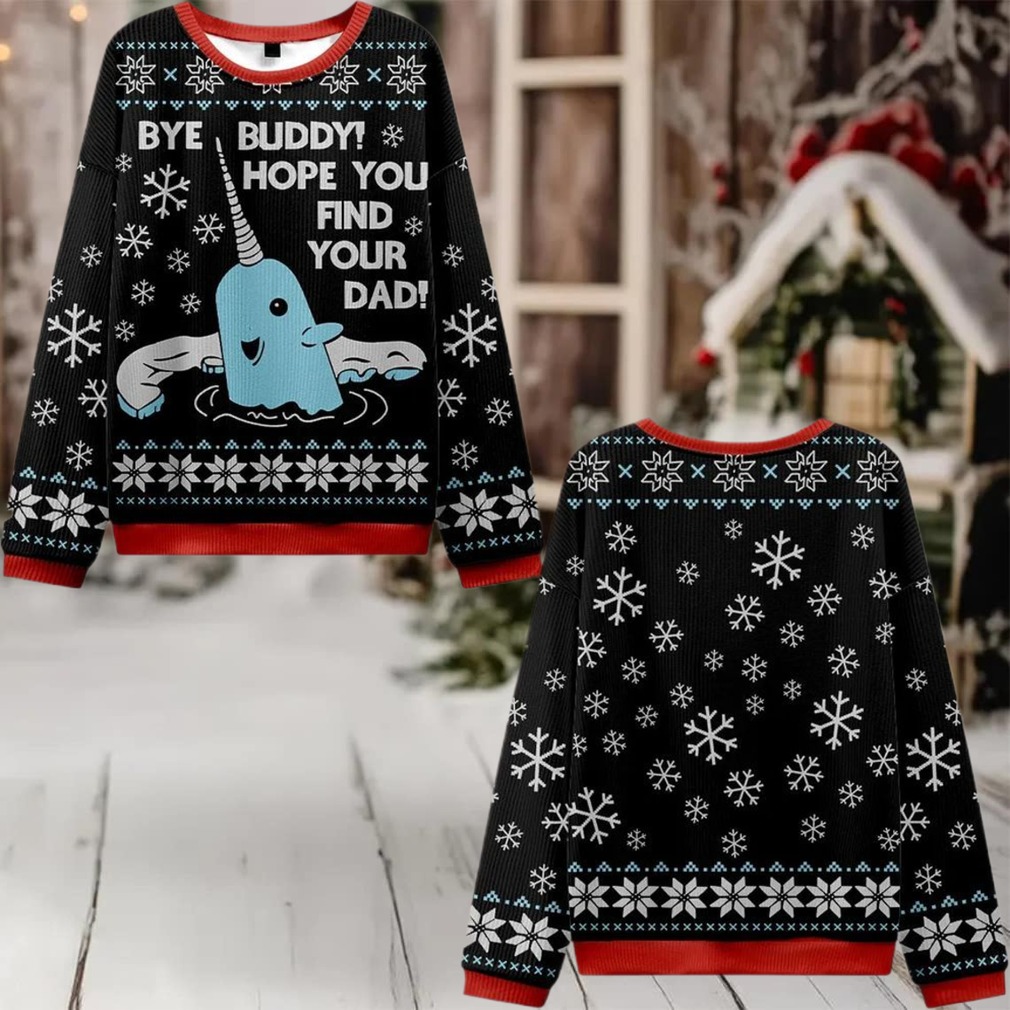 Remember that feeling when you finally found *the* perfect movie quote that encapsulated an entire holiday classic? This year, bring that iconic humor to your festive wardrobe with the “Bye Buddy Hope You Find Your Dad Ugly Sweater 2025 Christmas.” It’s more than just a sweater; it’s a nostalgic nod to one of the most beloved Christmas movies, designed for anyone who loves to spread cheer with a witty, unforgettable statement. Perfect for holiday gatherings, themed parties, or simply making a statement that resonates with fellow fans.