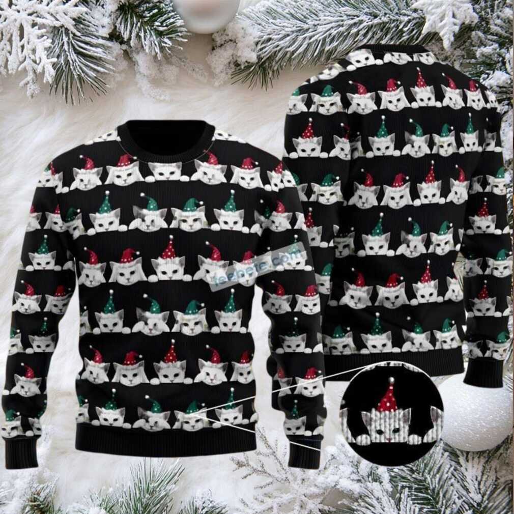 To keep your sweater looking its best, machine wash cold on a gentle cycle and tumble dry low. Avoid using bleach or harsh detergents, which can fade the design. With proper care, this festive piece will bring “meowy” joy for many Christmases to come!