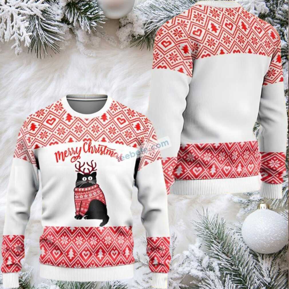 What Makes This Cat Merry Christmas White Red Family Ugly Christmas Sweaters Epic