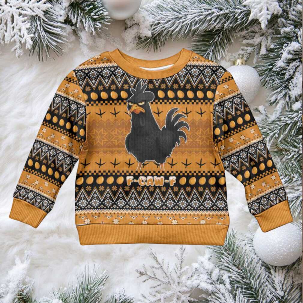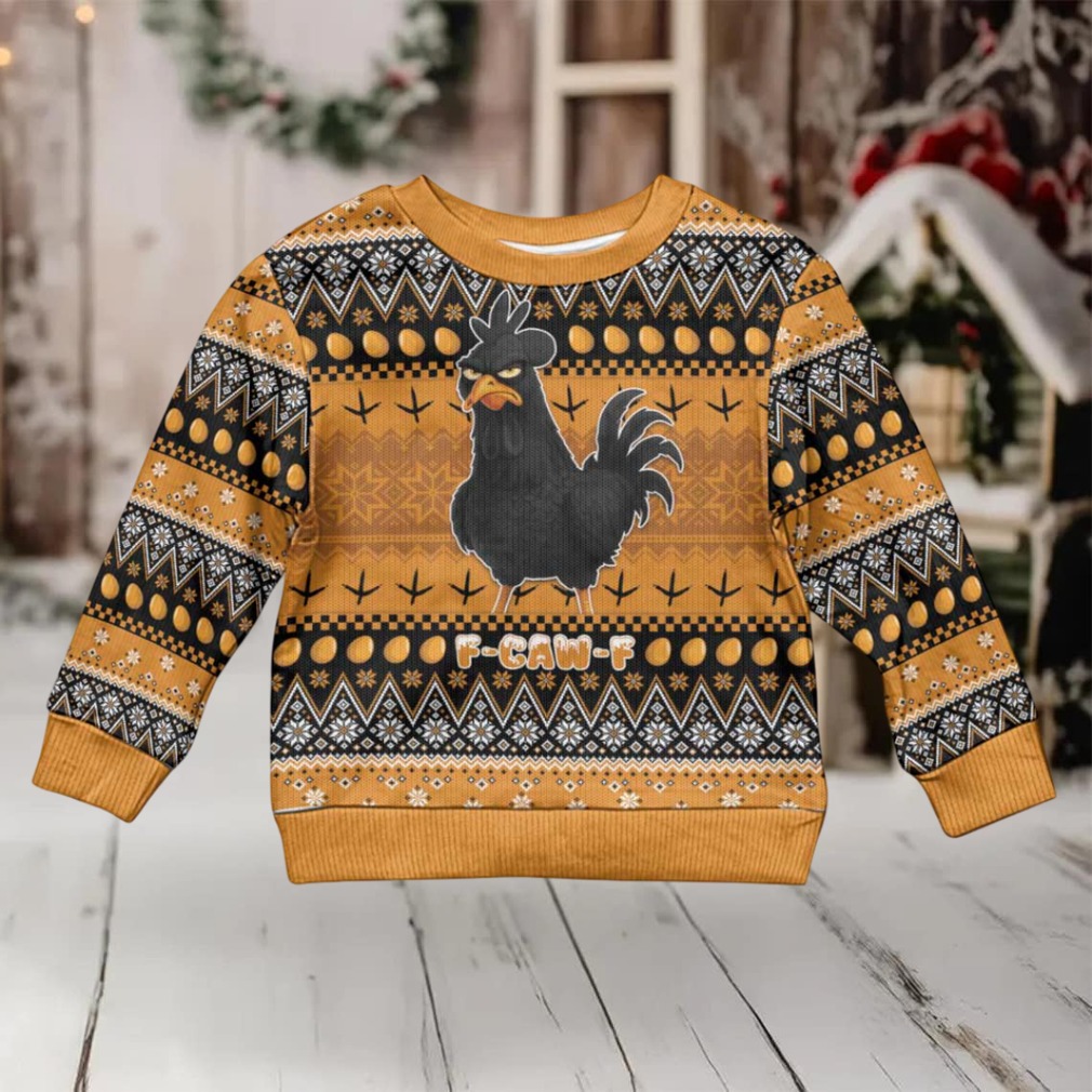 Looking for a hilariously cute Christmas sweater for your little one? This Chicken Christmas Kid Ugly Christmas Sweater featuring “F Caw F” is sure to be a hit! Imagine your child strutting around in this quirky sweater, spreading laughter and holiday cheer wherever they go. It’s the perfect way to make Christmas extra memorable for your little chickadee!