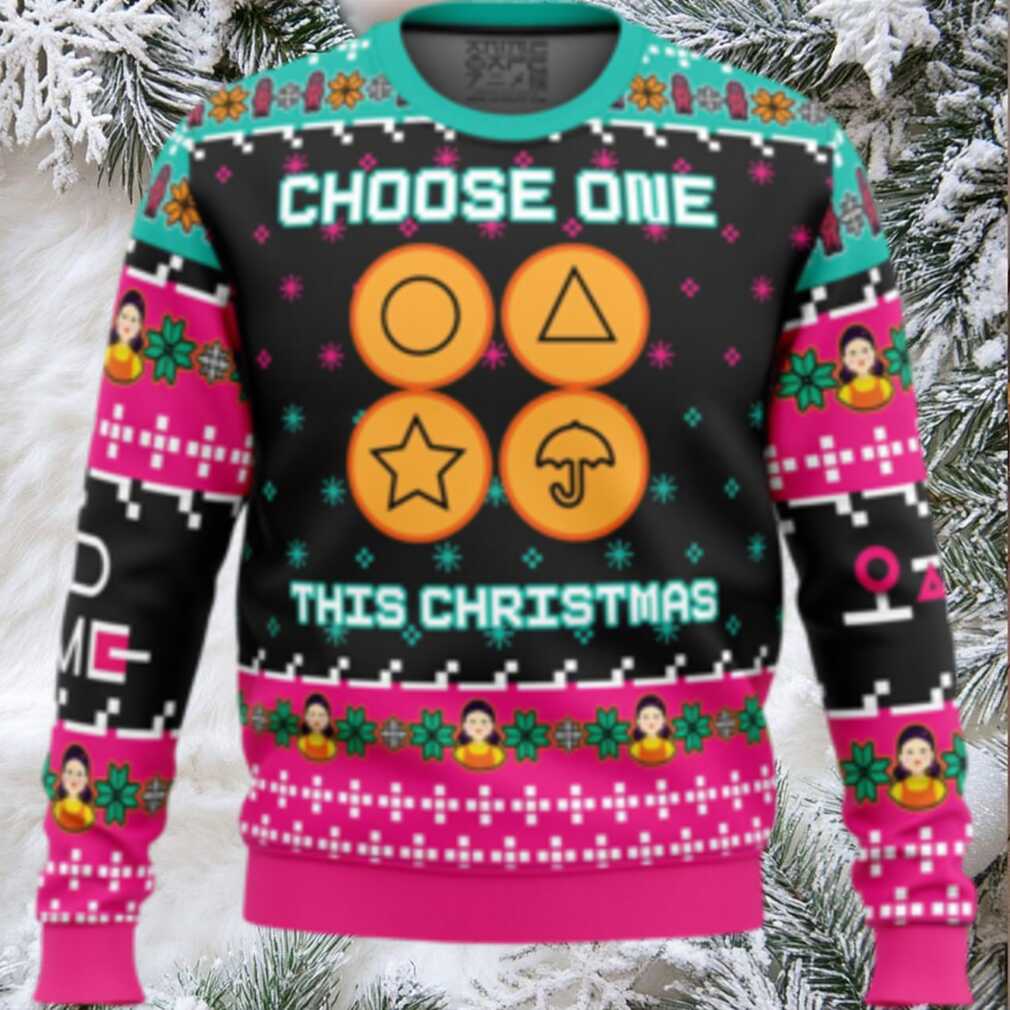 Ready to play this Christmas? This “Choose One” Squid Game Christmas Sweater is a unique and edgy way to celebrate the holidays! Perfect for fans of the hit Netflix show, this sweater combines festive cheer with a touch of suspense. Are you game?