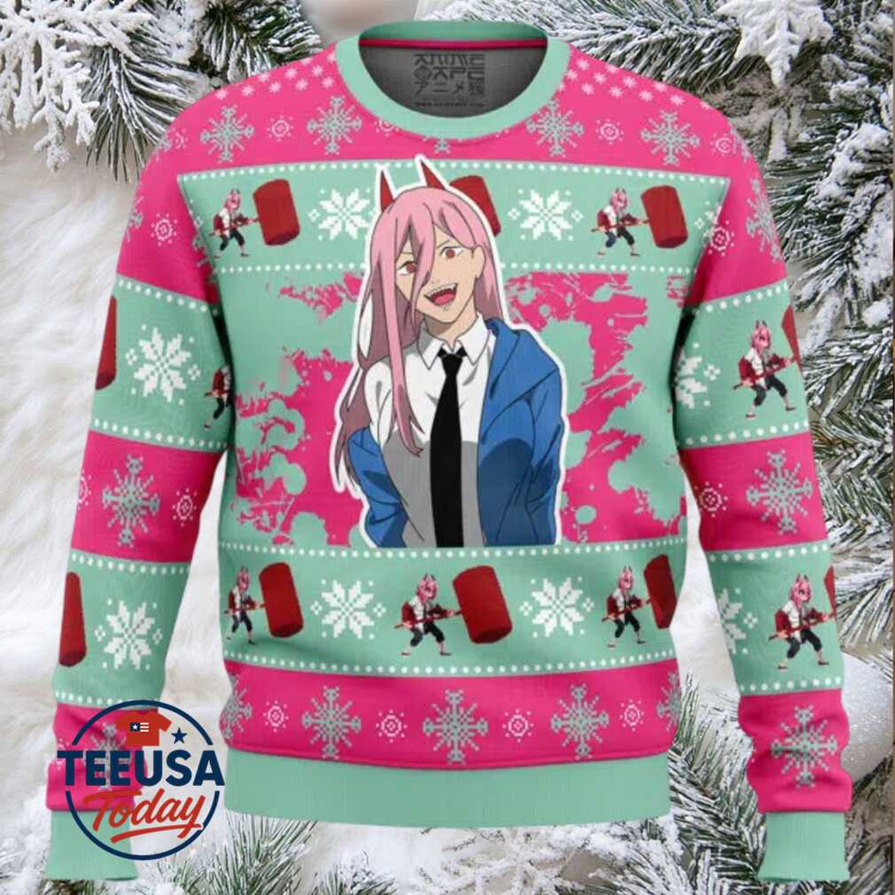 Rev up your holiday spirit with the Christmas Power Chainsaw Man Ugly Christmas Sweater! This electrifying sweater features Power from Chainsaw Man, ready to slice through the holiday doldrums with her signature energy. Perfect for fans who want to make a bold and chaotic statement at their next Christmas gathering. Get ready to unleash some devilish holiday cheer!