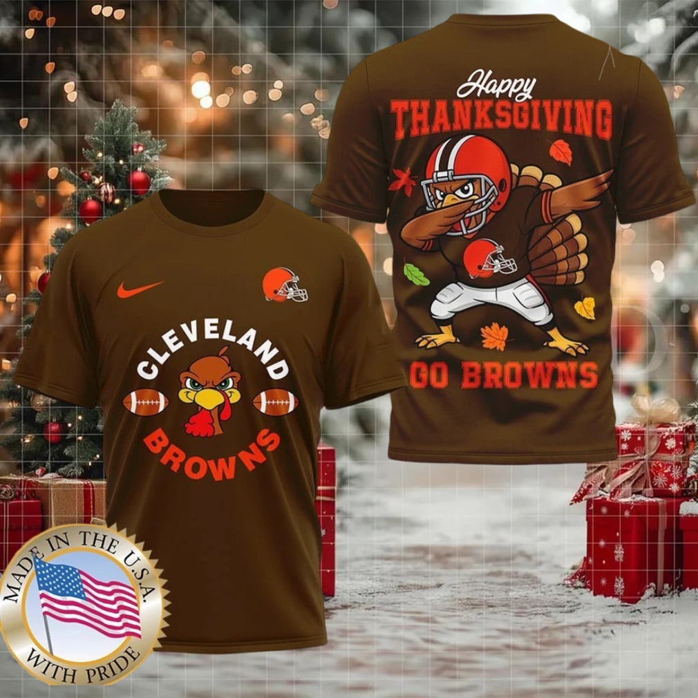 To keep your Cleveland Browns Thanksgiving shirt looking its best, machine wash it inside out in cold water and tumble dry on low. Avoid ironing directly on the design to maintain its festive appearance.