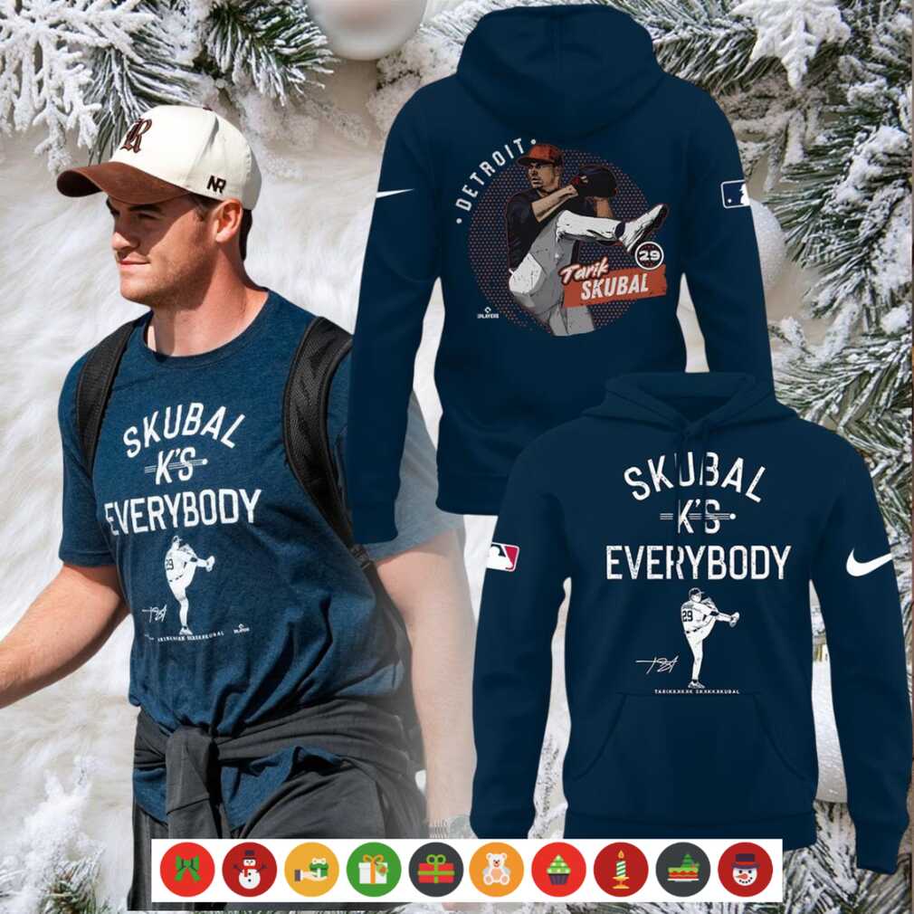 Celebrate Detroit’s pitching ace with this Detroit Tigers Tarik Skubal K’s Everybody Hoodie Shirt. Perfect for showing your support at Comerica Park or anywhere you go, this hoodie lets everyone know you’re a true Skubal fan. Get ready to cheer on the Tigers in style and comfort!