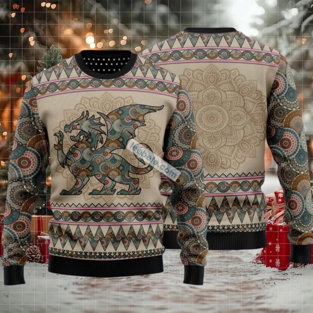 Embrace the magic of the season with this enchanting Dragon Mandala Ugly Xmas Sweater for Women. This sweater perfectly blends the mythical with the merry, making it the ideal statement piece for women who love dragons, mandalas, and spreading holiday cheer.