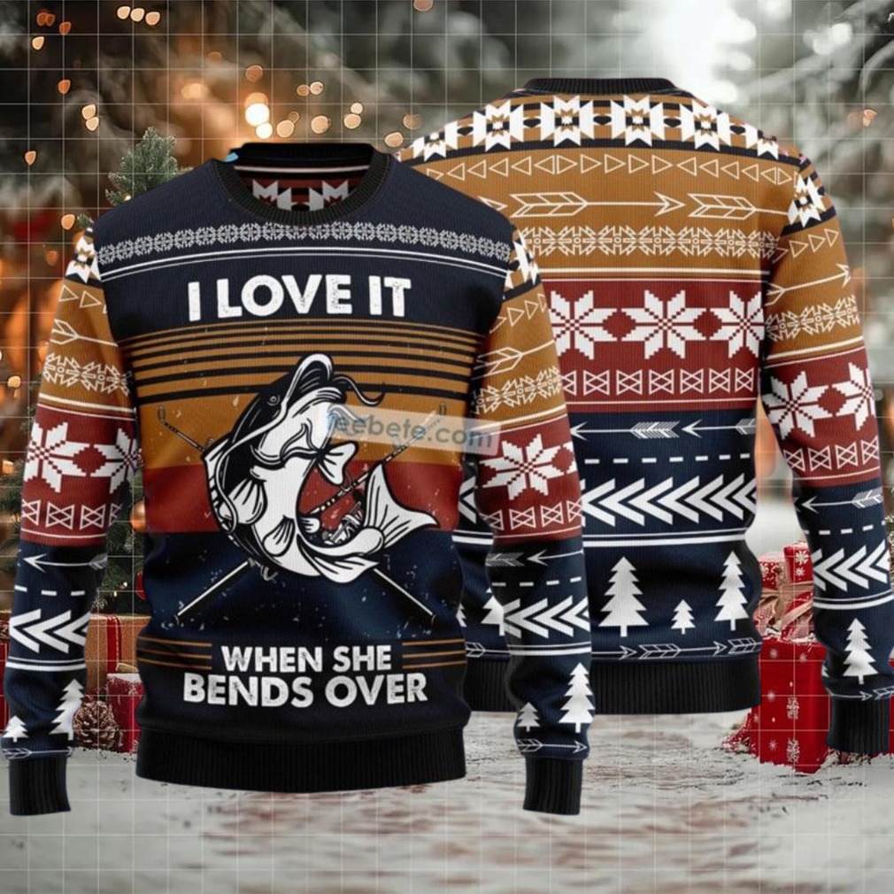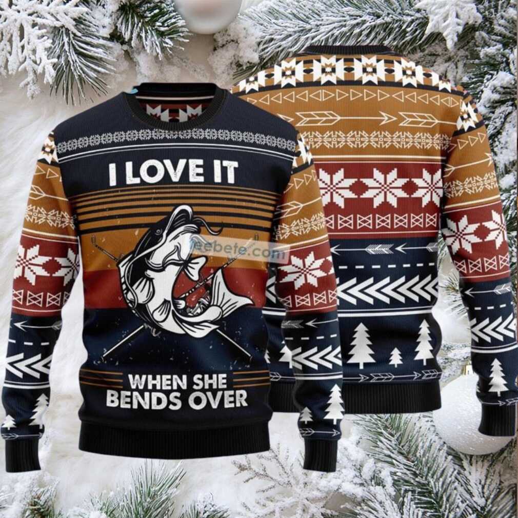 Reel in some laughs this holiday season with the “Fishing I Love It When She Bends Over” Ugly Christmas Sweater! This sweater is the perfect catch for the fisherman with a sense of humor, ready to make a splash at any Christmas party. It’s the kind of gag gift that’ll have everyone talking (and maybe blushing a little).