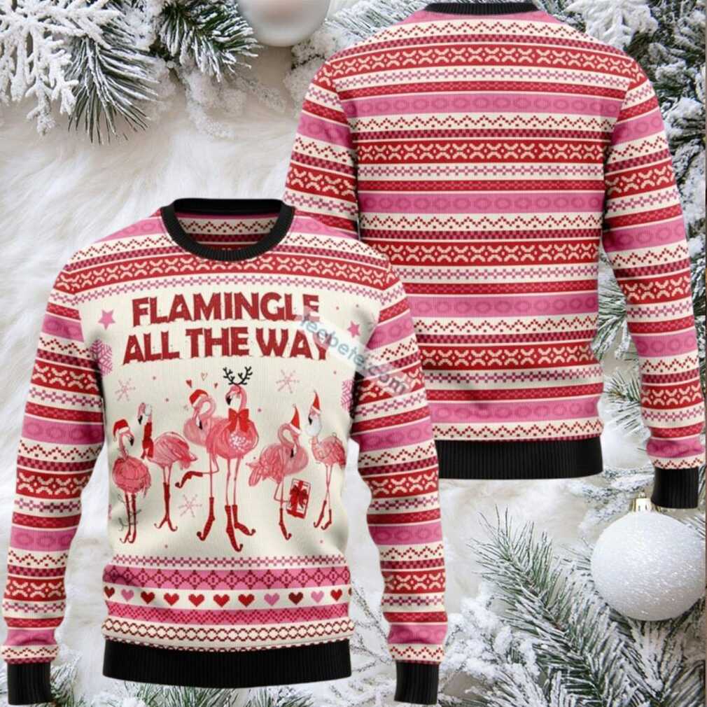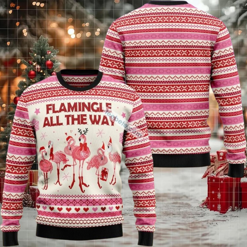 Ready to “flamingle” this Christmas? Then you need the “Flamingle All The Ways Ugly Christmas Sweater”! Ditch the traditional holiday attire and get ready to stand out in a sea of ordinary sweaters. This sweater is guaranteed to bring the fun and festivity to any Christmas gathering.