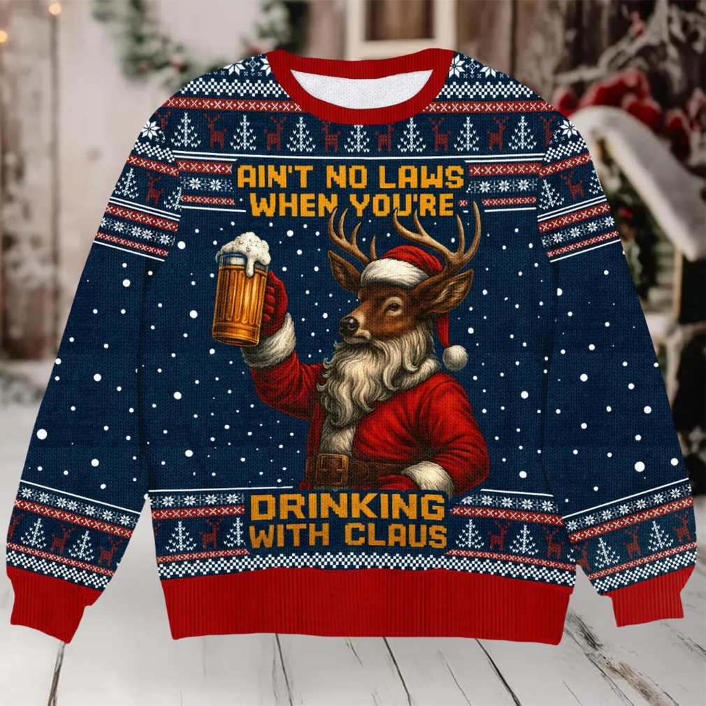 Who Rocks This Funny Drinking With Claus Ugly Christmas Sweater Best