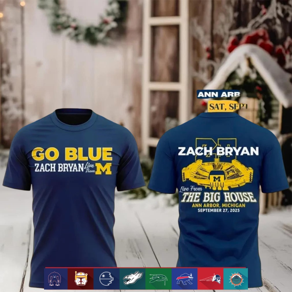 Imagine yourself at a tailgate, the grill is hot, and the band is getting ready to play. You’re sporting this Go Blue Zach Bryan x Michigan Wolverines The Big House shirt. Not only is it comfortable, made with a soft cotton blend, but it also sparks conversation. This shirt solves the problem of finding unique fan gear that represents more than one passion. It’s for the fan who appreciates quality, comfort, and a design that stands out in a sea of jerseys. With vibrant colors and a classic fit, it’s perfect for game day or any day you want to represent your team and your favorite artist.