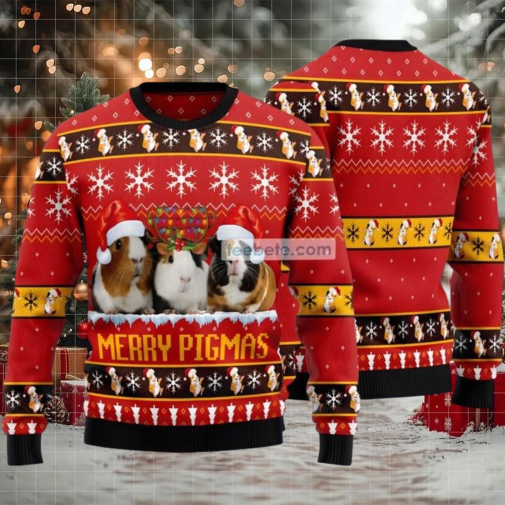 For the guinea pig obsessed, this “Guniea Pigmas” Ugly Christmas Sweater is the ultimate holiday statement piece! Imagine the delight on your fellow guinea pig lovers’ faces when you rock up in this festive and funny sweater. It’s more than just ugly; it’s a celebration of your furry friends and the holiday season all rolled into one. Get ready to spread some “Pigmas” cheer!