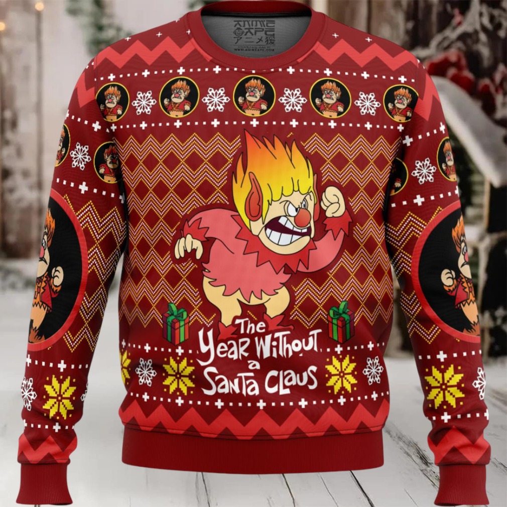 Feeling hot, hot, hot this holiday season? Then you need the Heat Miser The Year Without a Santa Claus Ugly Christmas Sweater! This sweater is for fans of the classic Christmas special. Perfect for those who want to bring some fiery fun to their holiday gatherings!