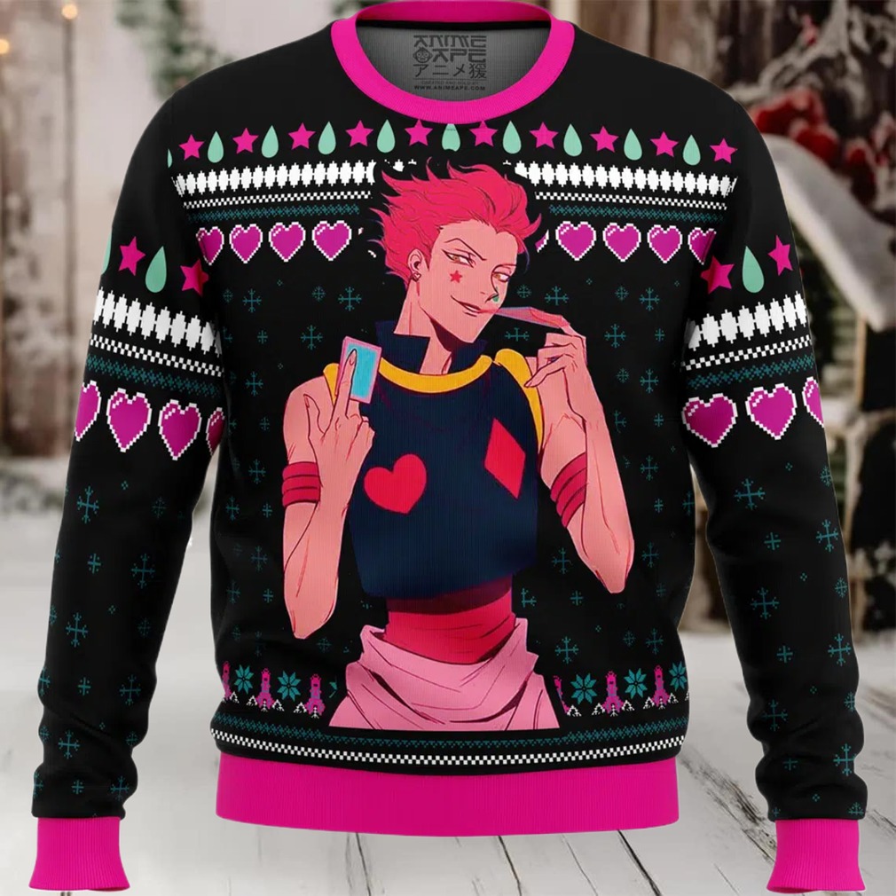 Embrace your inner trickster this holiday season with the Hisoka Hunter X Hunter Ugly Christmas Sweater! Featuring the enigmatic and powerful Hisoka Morow, this sweater is perfect for any Hunter X Hunter fan who loves a bit of mischief. Imagine the looks and knowing nods you’ll get at your next holiday party. It’s the ultimate way to show off your anime fandom with a festive twist.
