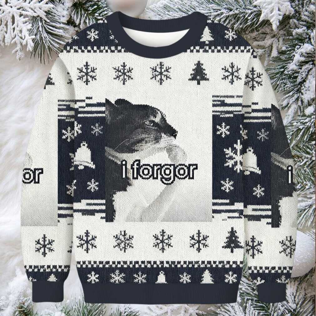 Ever have one of those days where you just…forgor? This “I Forgor” cat meme Christmas ugly sweatshirt captures that universal feeling with a hilarious feline twist, perfect for adding a touch of relatable humor to your holiday season.