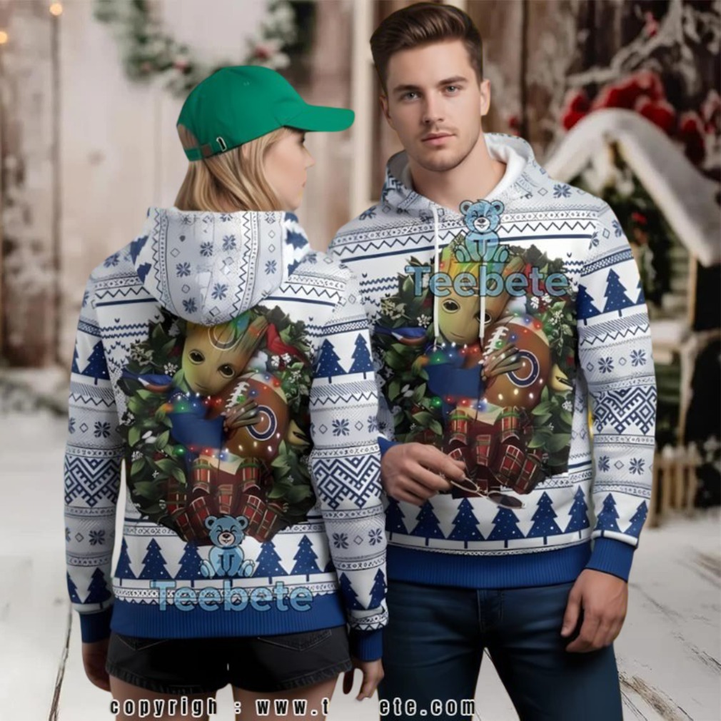 With each Indianapolis Colts Baby Groot Christmas Wreath Ugly 3D Hoodie Design, you are contributing to creating a green tree.