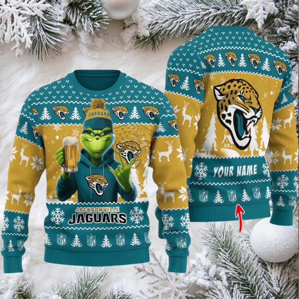 What Makes This Jacksonville Jaguars Grinch With Beer Ugly Christmas Sweater Epic: