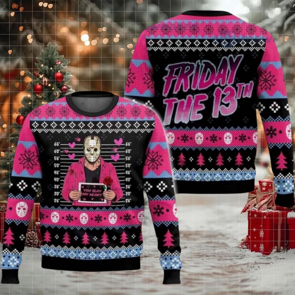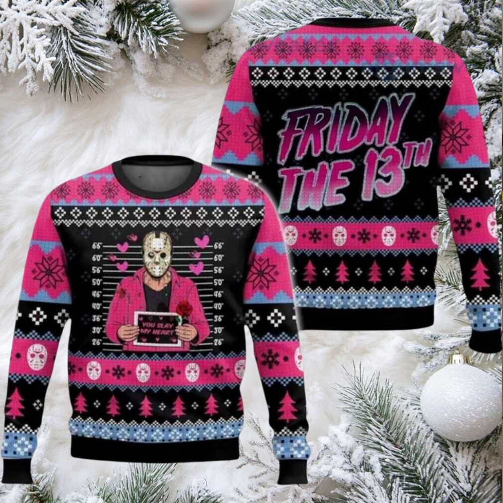 This Christmas, let Jason Voorhees “slay” your heart with a uniquely terrifying twist! The “Jason Voorhees Friday The 13th You May Slay My Heart Ugly Christmas Sweater” is the perfect blend of holiday horror and dark humor. Forget those cutesy reindeer – this sweater is for those who like their Christmas with a side of Camp Crystal Lake. Ideal for horror fans and anyone who likes to shock and amuse, this sweater is your ticket to winning any ugly sweater contest!