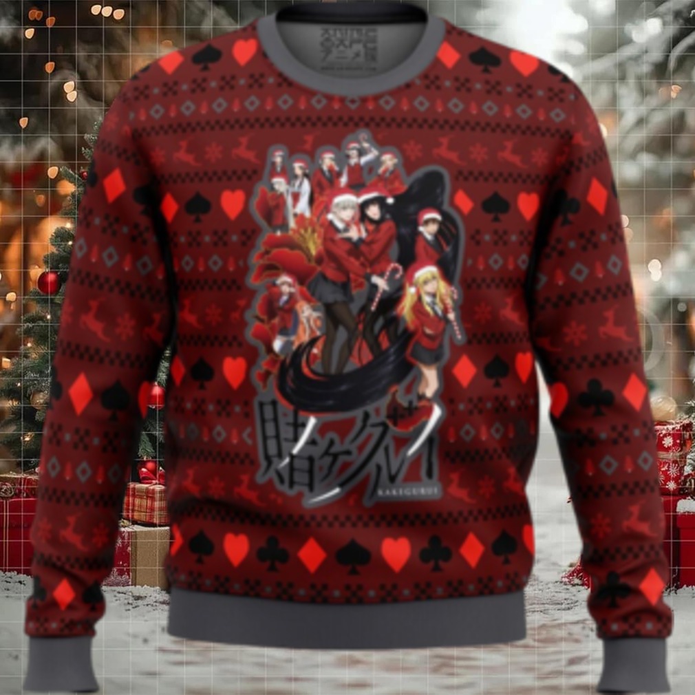 Get ready to gamble on holiday fun with this Kakegurui Hyakkaou Private Academy Ugly Christmas Sweater! Perfect for anime fans, this sweater combines festive cheer with a touch of high-stakes style. Show off your unique holiday spirit and your love for Kakegurui!