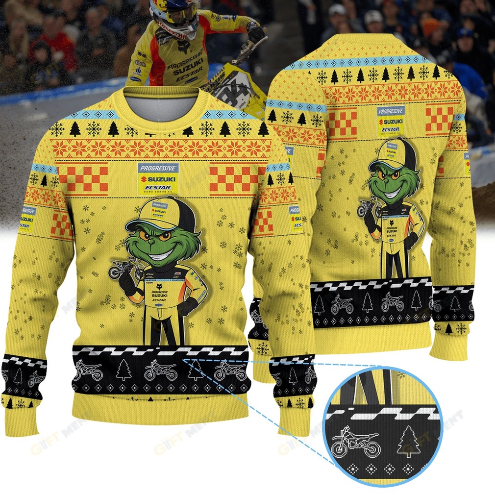 Ride into the holiday season with the Ken Roczen Grinch Ugly Christmas Sweater! This unique sweater brings together the excitement of Ken Roczen’s racing with the playful spirit of the Grinch, making it an essential item for any supercross fan. Imagine showing off your support for Ken Roczen and the ECSTAR Suzuki team at holiday gatherings, all while sporting a fun, festive design that’s sure to be a conversation starter and spread some holiday cheer.