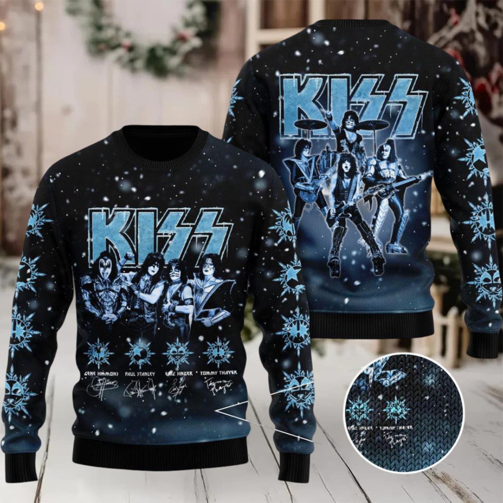 This Kiss Band Merry Kiss Mas Signature Xmas Gifts 2025 Ugly Christmas Sweater isn’t just a piece of clothing; it’s a ticket to a rock and roll Christmas party. Imagine wearing this sweater to a holiday concert, an ugly Christmas sweater contest, or while blasting KISS albums at home – you’re instantly the life of the party. The sweater solves the problem of finding unique, high-quality rock merchandise that celebrates your favorite band in a fun, festive way. Its value lies in blending holiday cheer with rock and roll fandom, making it a memorable and standout piece.