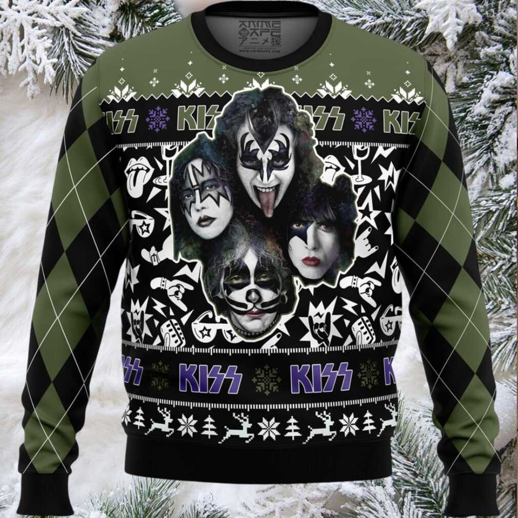 This sweater is for the ultimate Kiss Army member, the one who knows all the lyrics and can rock the face paint. It’s for the person who likes to turn up the volume and isn’t afraid to express their love for rock and roll. Wear it to your next holiday party, while listening to your favorite Kiss album, or even while decorating the tree with rock and roll ornaments. It’s also an excellent gift for that music-loving friend or family member. Give the gift of rock and roll this Christmas!