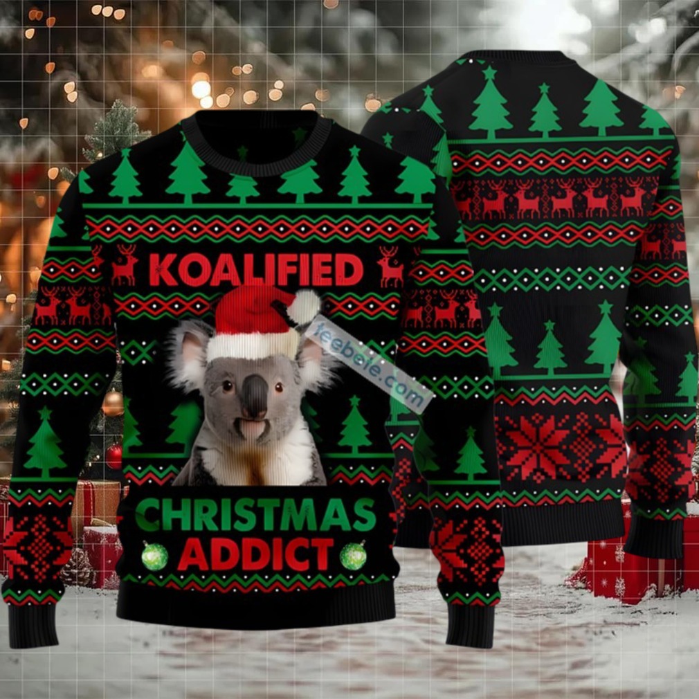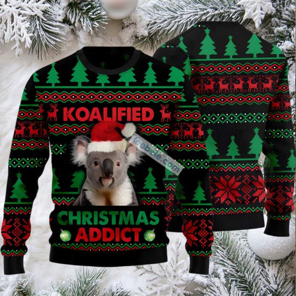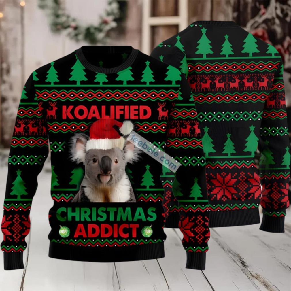 Do you have a serious Christmas sweater addiction? Are you also a lover of adorable Australian marsupials? Then the “Koala Koalified Christmas Addict Ugly Christmas Sweater” is calling your name! This black sweater combines festive cheer with irresistible koala charm, making it the perfect addition to your holiday wardrobe.