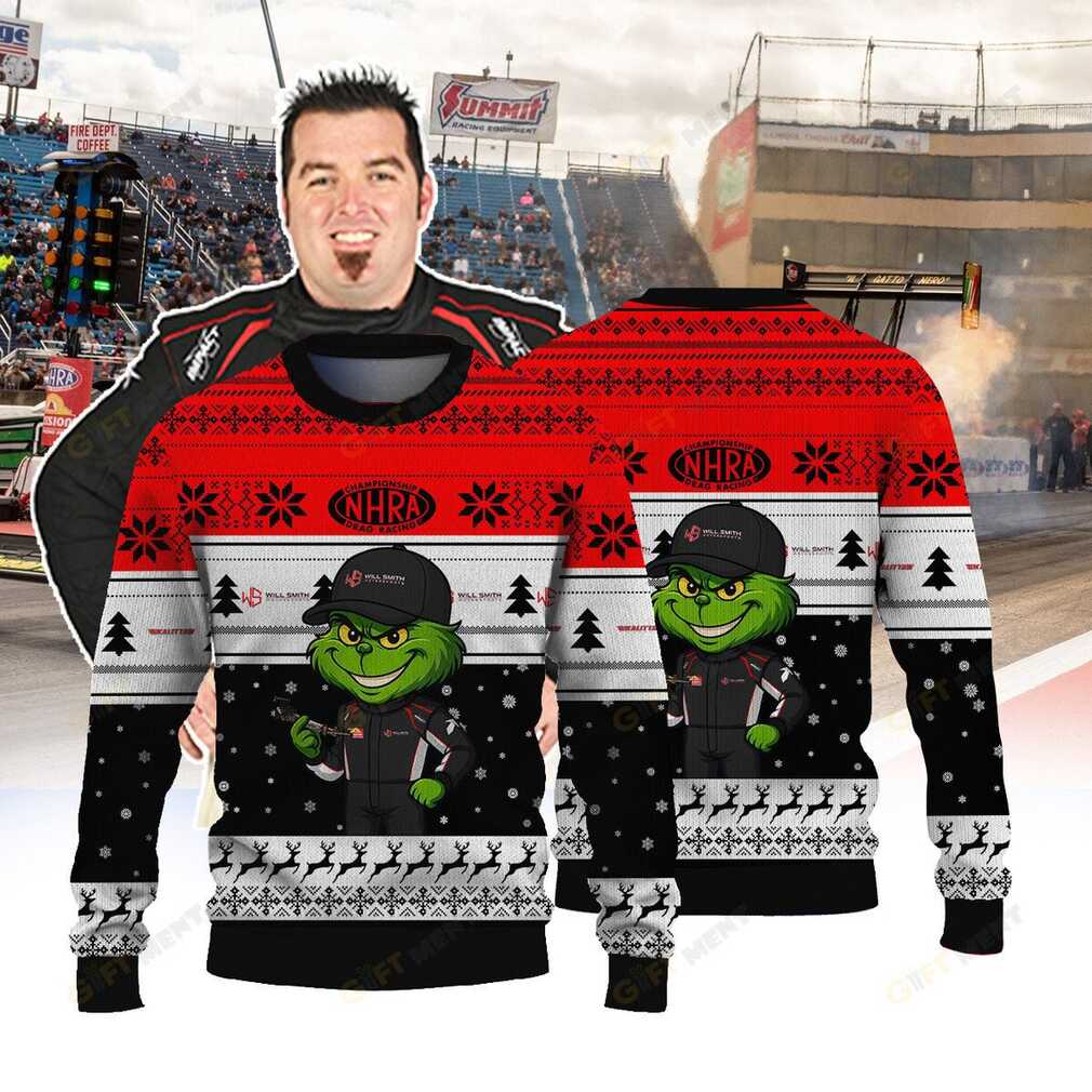 This Larry Dixon Racing Grinch Ugly Christmas Sweater is designed for true motorsports aficionados who love a good holiday twist. It features a striking graphic of Larry Dixon’s dragster, intertwined with the Grinch creating a truly memorable scene. Made from a soft, comfortable cotton blend, this sweater ensures you stay cozy whether you’re at a holiday party or watching replays of classic NHRA races. With a relaxed fit, it’s easy to wear and a guaranteed conversation starter, blending your love for Top Fuel racing with undeniable festive spirit.