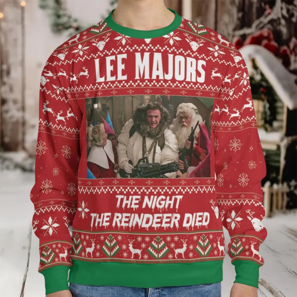 Who Rocks This Best Lee Majors The Night the Reindeer Died Ugly Christmas Sweatshirt