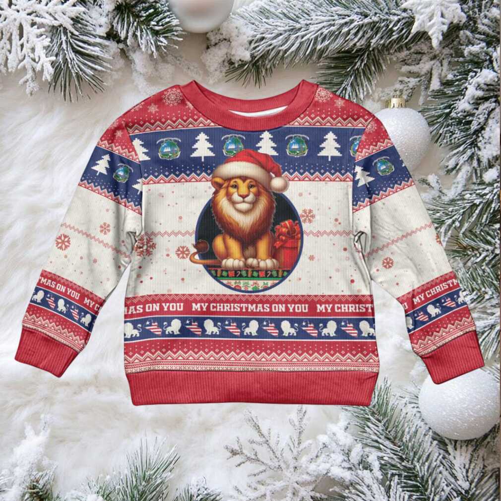 Celebrate a Liberian Christmas with this adorable Kid Ugly Christmas Sweater! Featuring a “My Christmas On You” design with a Lion Santa, this sweater is perfect for Liberian children to show their heritage during the holiday season. It’s a unique and festive way to spread Christmas cheer with a touch of Liberian pride. Get ready to make this Christmas extra special!