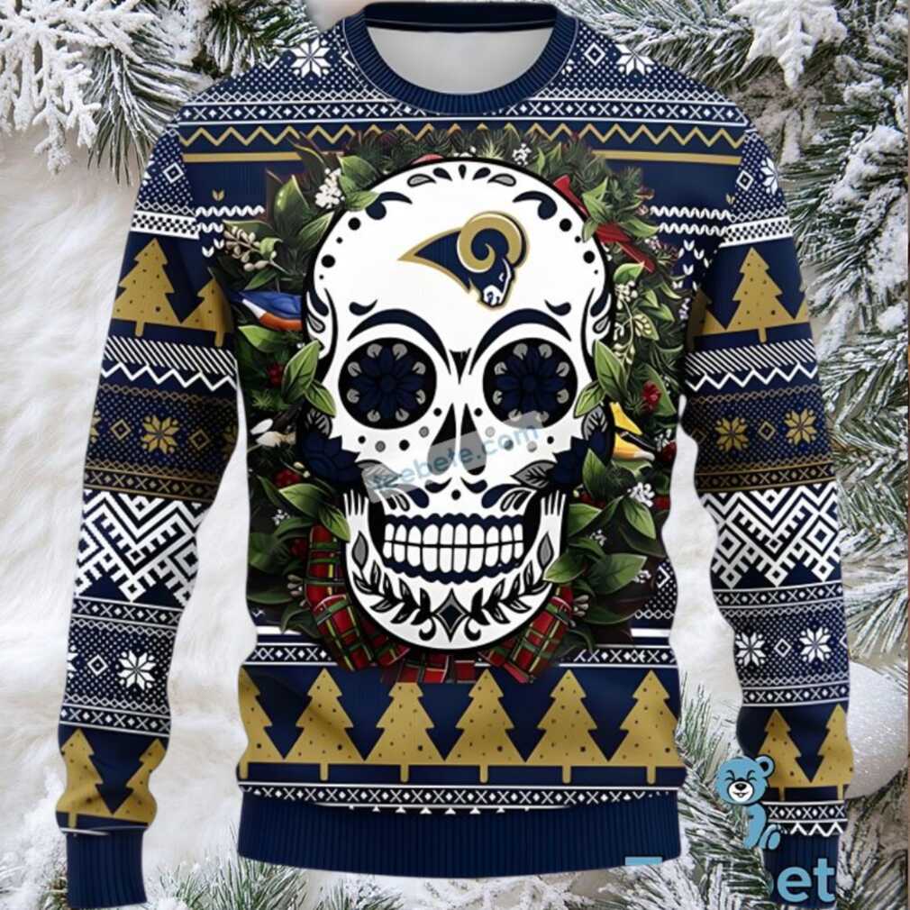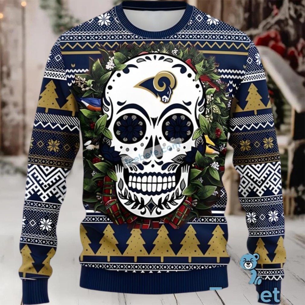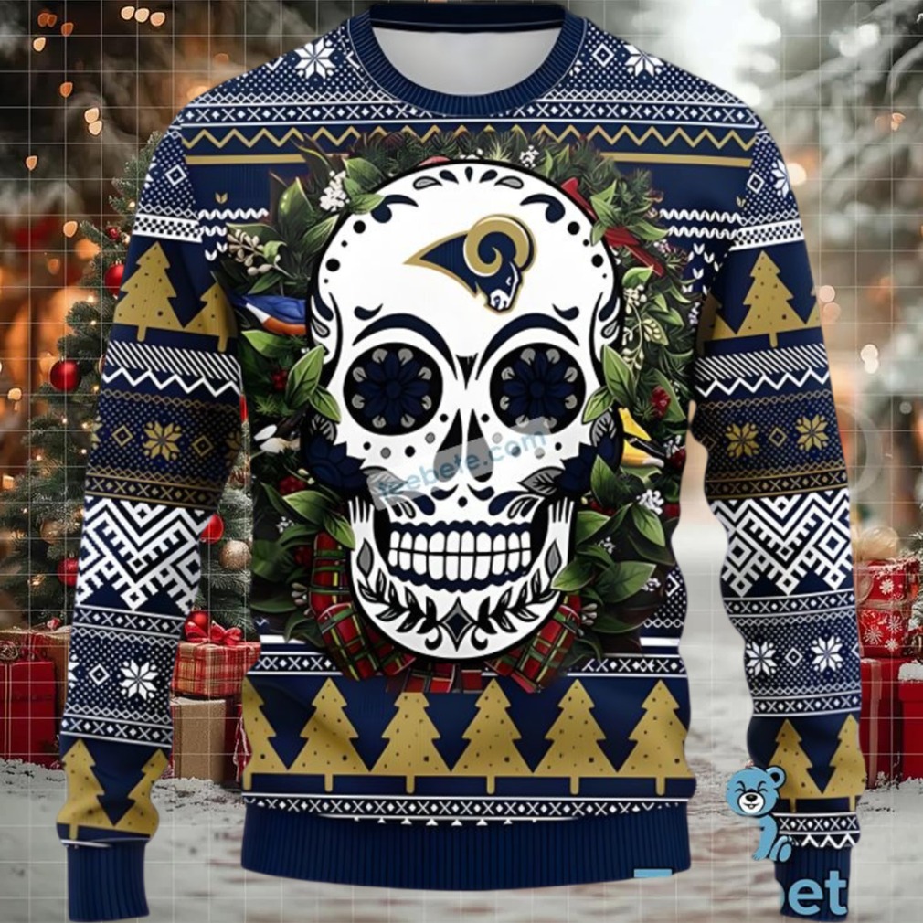 Looking for the perfect way to show your team spirit and holiday cheer as a couple? This Los Angeles Rams Skull Flower Couples Ugly Christmas Sweater is the answer! Combining the love for the Rams with a unique skull and flower design, these matching sweaters are a guaranteed touchdown. Perfect for Rams fans who want to celebrate the holidays in style!
