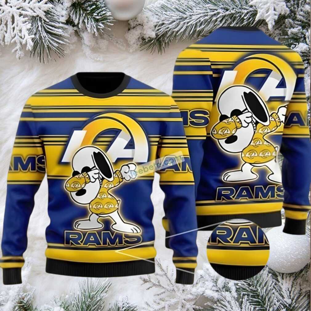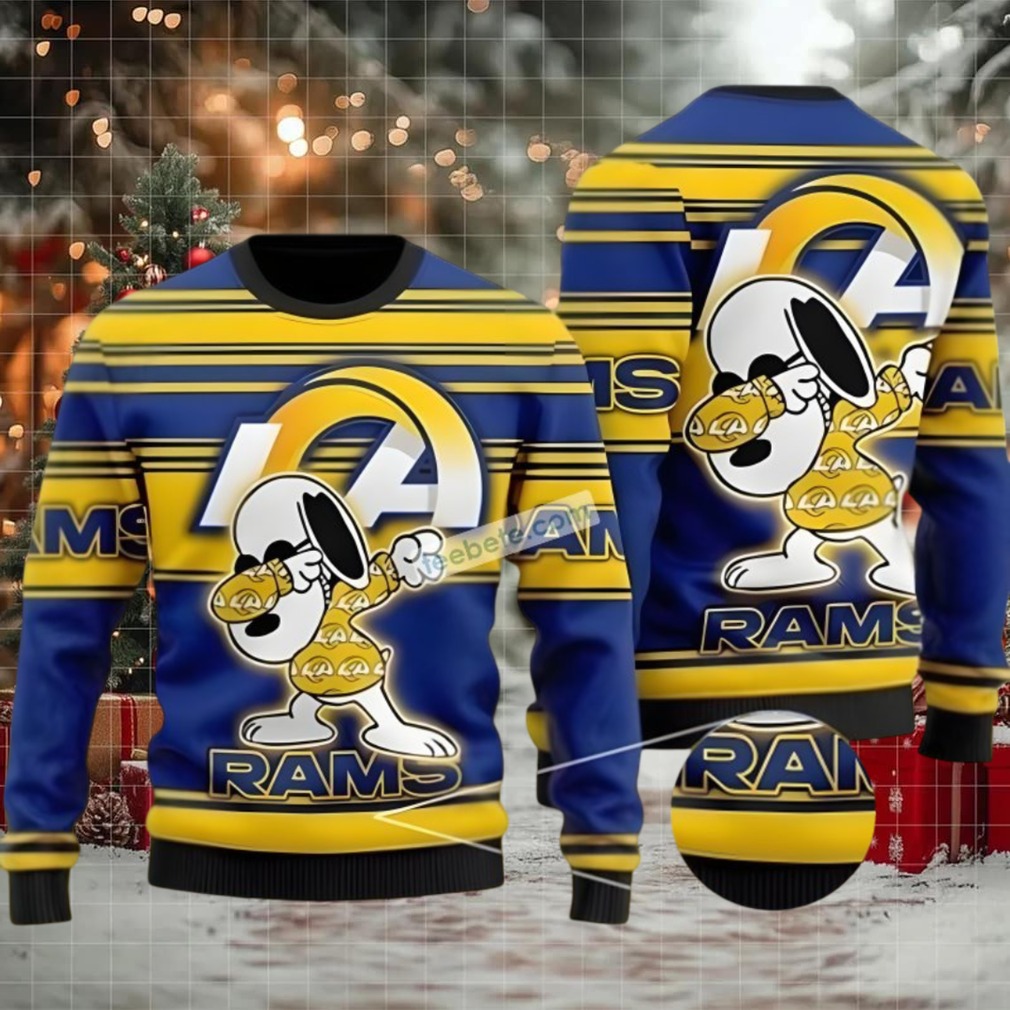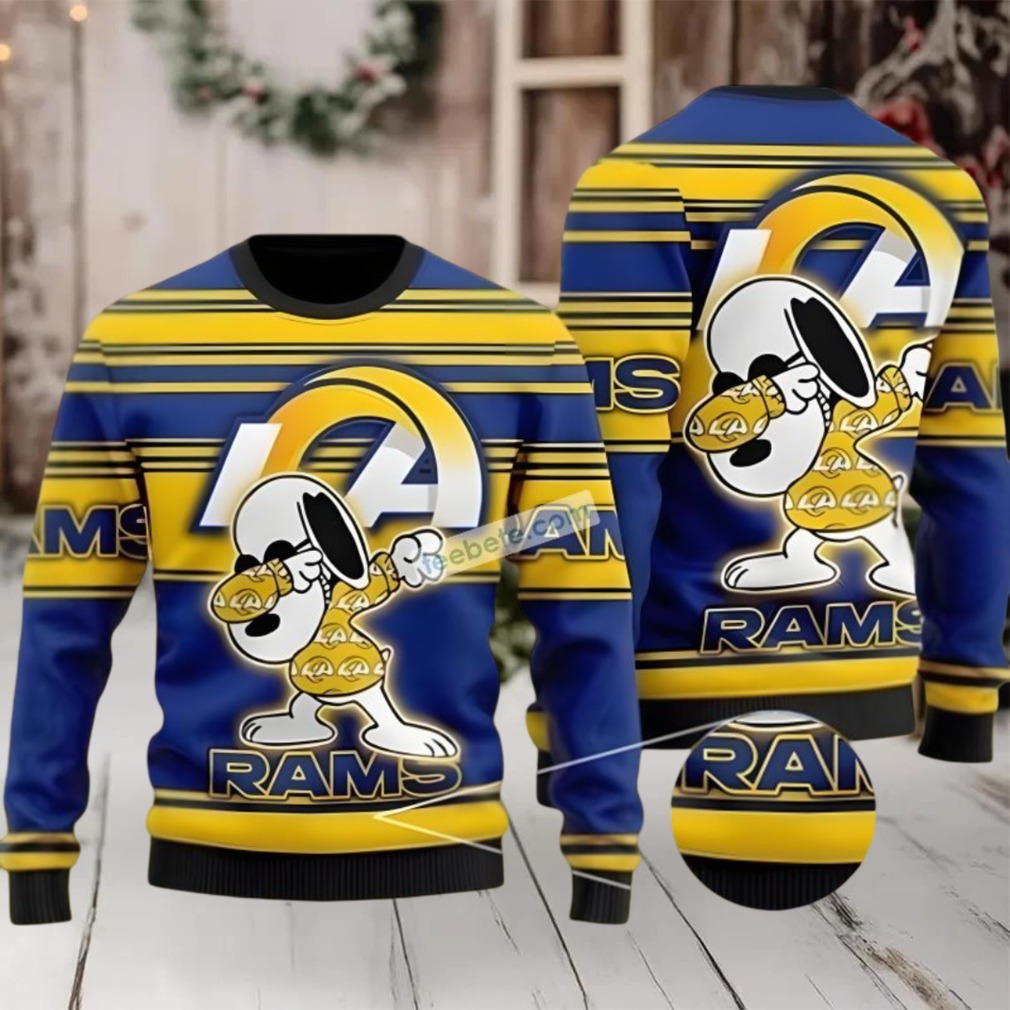 Celebrate the holidays with a touch of Peanuts charm in this Los Angeles Rams Snoopy Ugly Christmas Sweater! The perfect way for male Rams fans to showcase their team spirit and love for Snoopy at any festive occasion. Get ready to spread some cheer and win that ugly sweater contest!