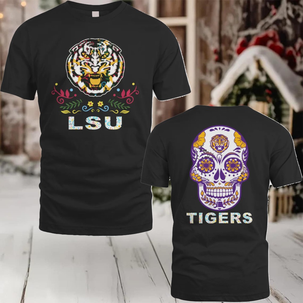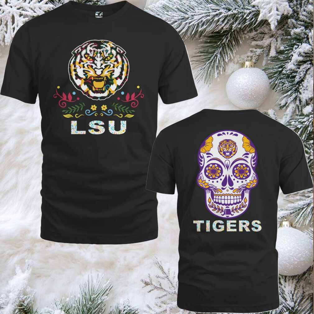 To keep your LSU Tigers Dia De Los Muertos T Shirt looking its best, machine wash it inside out in cold water. Tumble dry on low or hang it to dry. Avoid using bleach or ironing directly on the design to preserve the vibrancy of the colors. With proper care, this shirt will be a cherished part of your game day and Halloween wardrobe for years to come.
