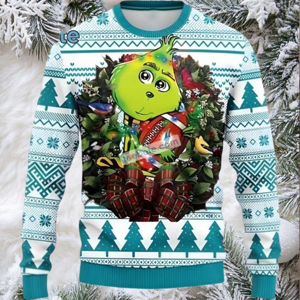 Spread holiday cheer with a touch of Grinchy fun in this Miami Dolphins Grinch Hug Ugly Christmas Sweater! Perfect for female fans who want to combine their love for the Dolphins with the iconic Grinch. This cozy sweater is sure to be a hit at any festive gathering.