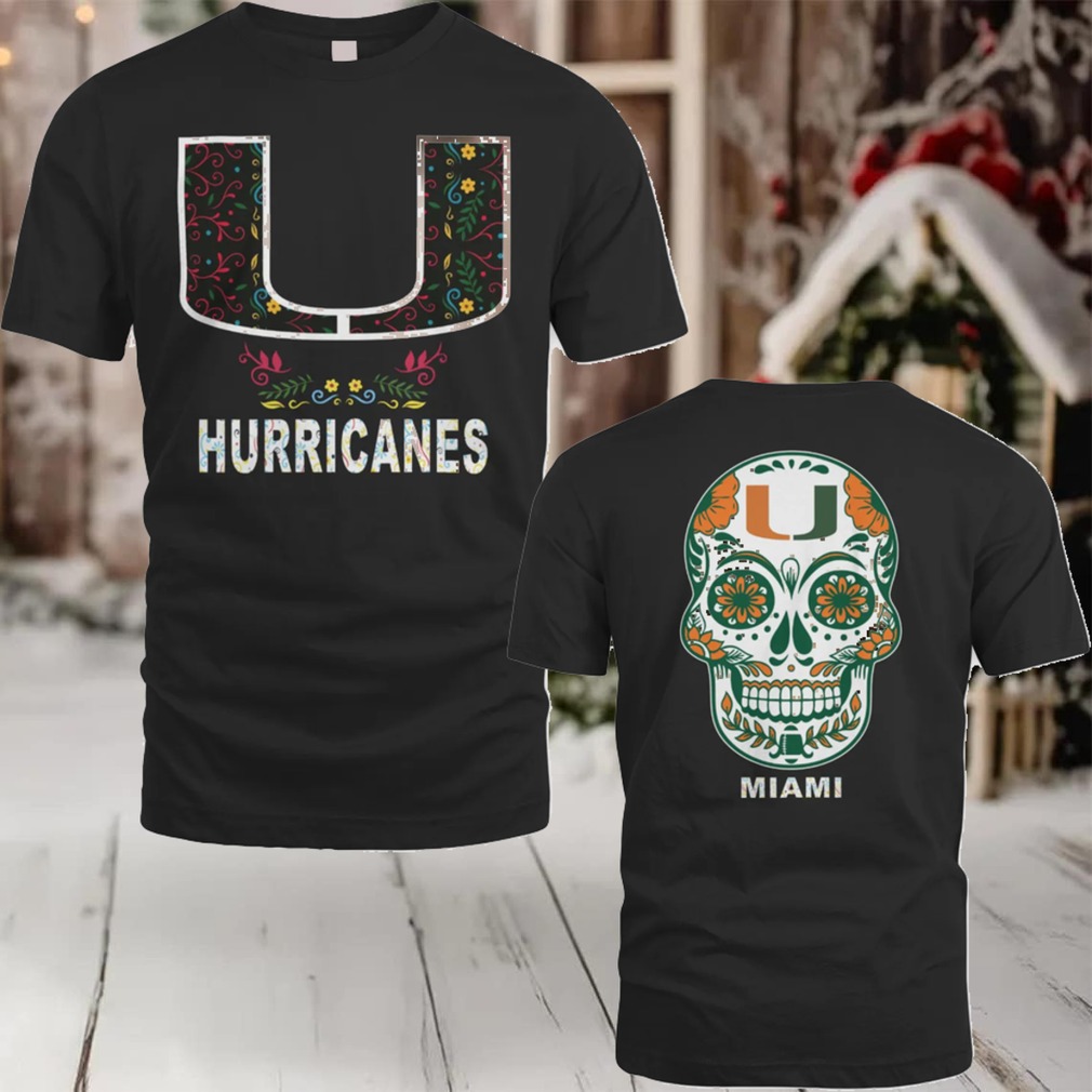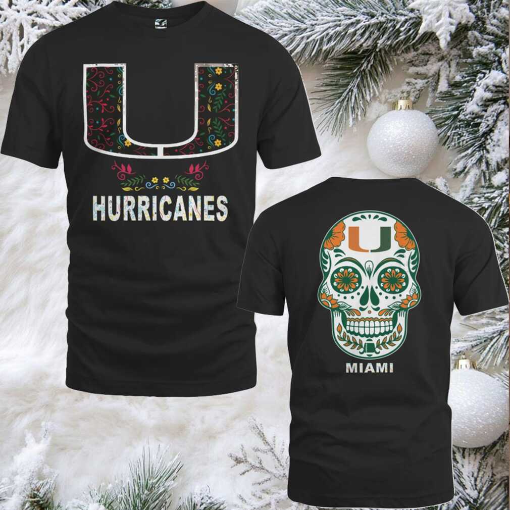 As the sun-kissed palms sway gently in Coral Gables, Florida, a vibrant fusion of Hurricanes pride and the heartfelt traditions of Dia De Los Muertos emerges. This Miami Hurricanes College Football Dia De Los Muertos T-Shirt is more than just fan apparel; it’s a spirited expression of two passionate worlds coming together. Envision yourself amidst the electrifying atmosphere of Hard Rock Stadium, the resounding cheers of “U-M!” reverberating through the air, and a sea of orange and green pride—now, picture that electrifying energy interwoven with the intricate artistry of Dia De Los Muertos. This distinctive tee embodies that very essence, making it an absolute essential for any devoted fan seeking to honor their team with a touch of cultural brilliance.