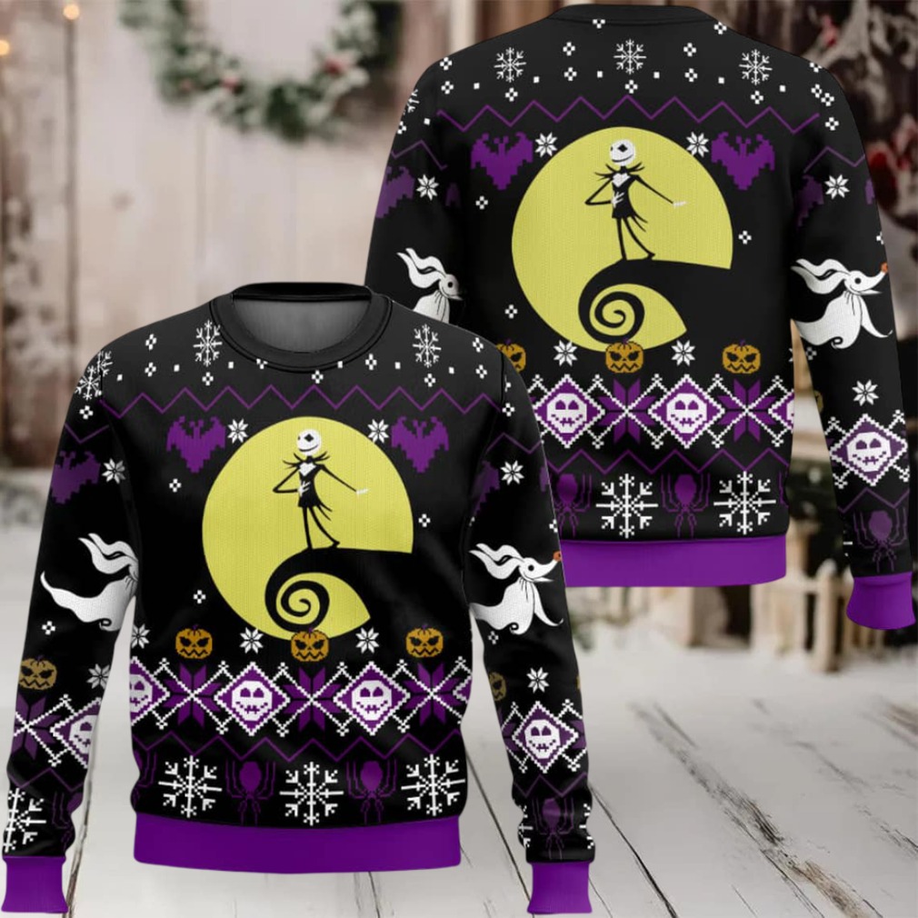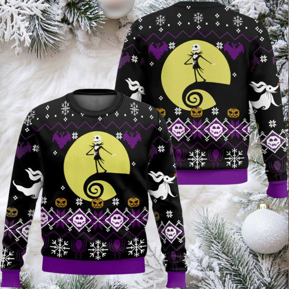 Step into Halloween Town this Christmas with the Moonlight Jack Skellington Ugly Christmas Sweater! If you’re a fan of Tim Burton’s classic “The Nightmare Before Christmas”, this sweater is the perfect way to show your love for the film during the holiday season. It’s spooky, it’s festive, and it’s guaranteed to turn heads at any Christmas gathering. Because who says Christmas can’t be a little bit creepy?