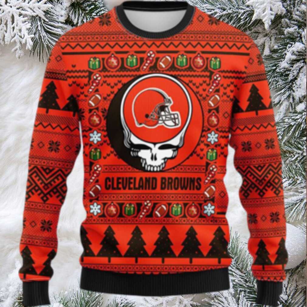 Combine your love for the Cleveland Browns and the Grateful Dead with this one-of-a-kind Christmas sweater! Imagine yourself turning heads at the next holiday gathering, sporting a sweater that celebrates both your favorite NFL team and the iconic band. This NFL Cleveland Browns Ugly Sweater is perfect for those who want to stand out from the crowd and showcase their unique passions.