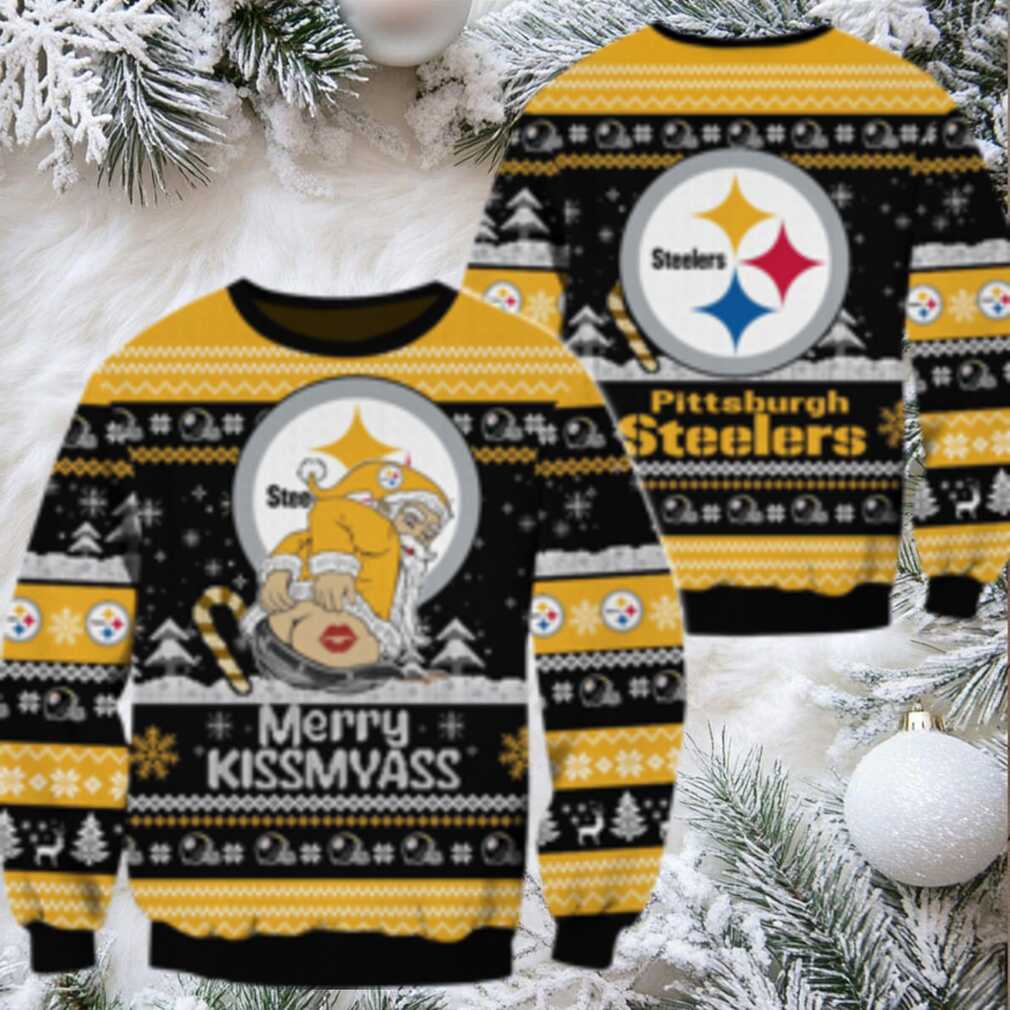 The holiday season just got a whole lot funnier for Pittsburgh Steelers fans! This unique NFL Pittsburgh Steelers Christmas Ugly Sweater features a hilarious “Merrykissmyass” Santa Claus design, perfect for showing your team spirit with a twist of humor. It’s the ideal conversation starter at any Christmas party or game day gathering.