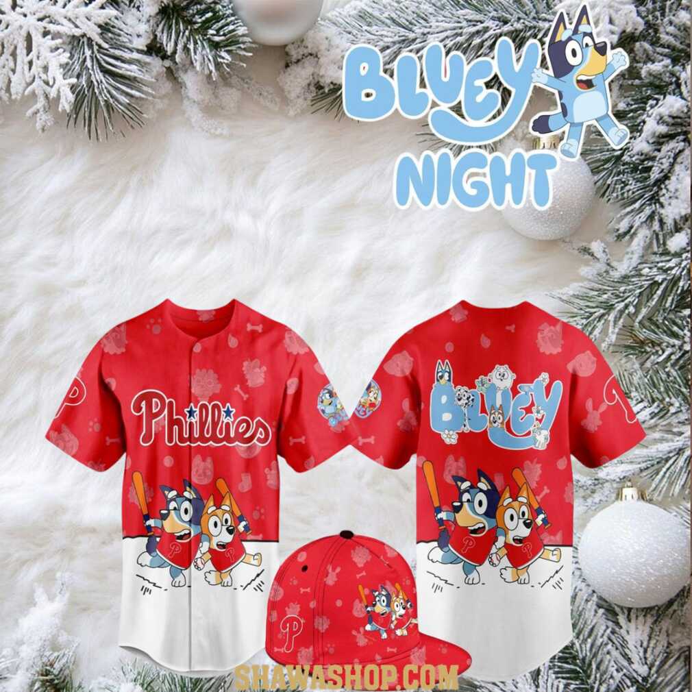 Get ready for game night with the Philadelphia Phillies 2025 Bluey MLB Game Night Christmas Baseball Jersey! This unique jersey combines your love for the Phillies with the fun of Bluey, making it a perfect choice for fans of all ages. Celebrate the holiday season and baseball season in style!