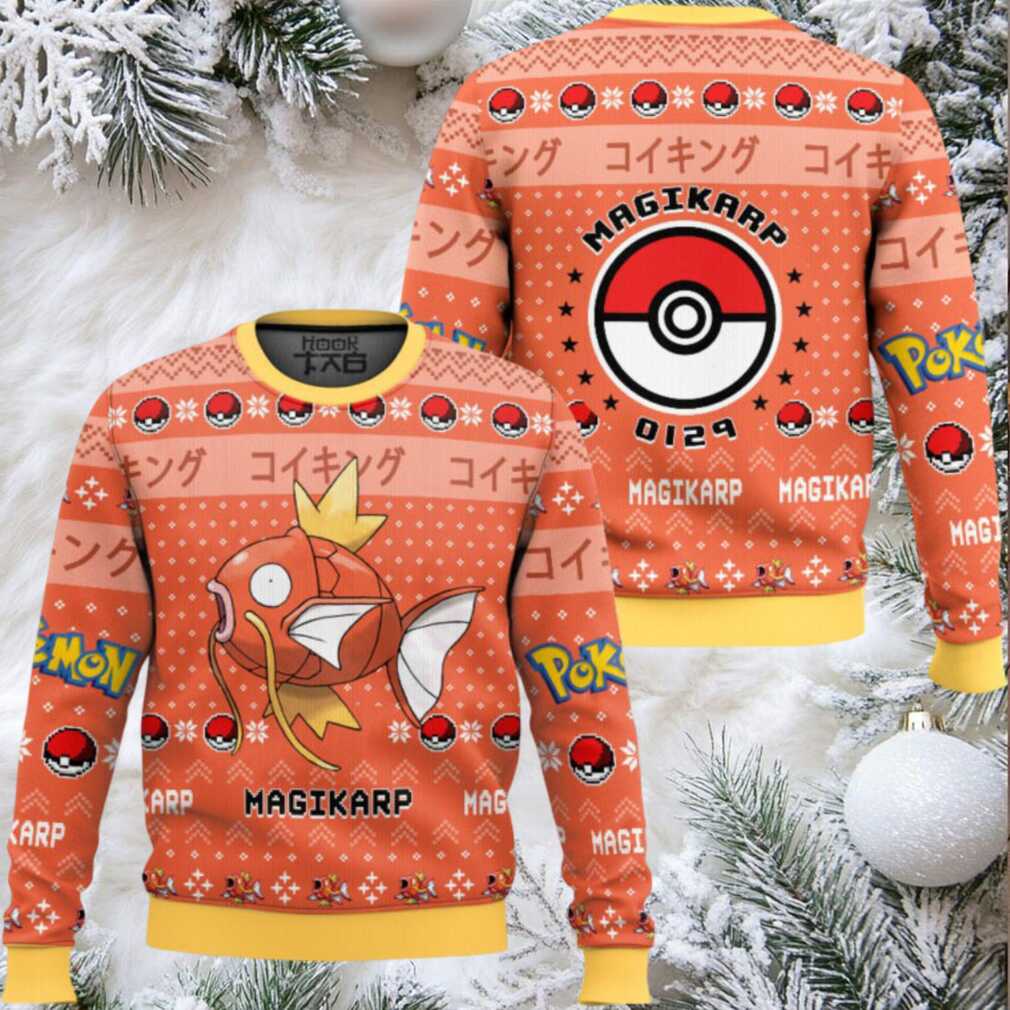 - Features the one and only Magikarp in an amusing and eye-catching ugly Christmas sweater motif.