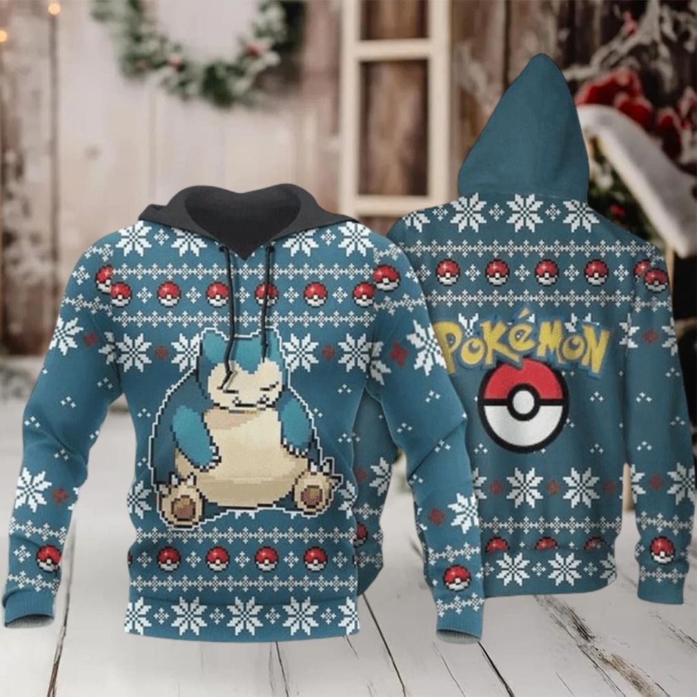 This hoodie brings together the beloved Snorlax from Pokemon with the festive spirit of an ugly Christmas sweater. It’s a quirky and fun design that any anime or manga fan would appreciate, especially during the holiday season. Perfect for those who love to express their unique style and passion for Japanese pop culture.