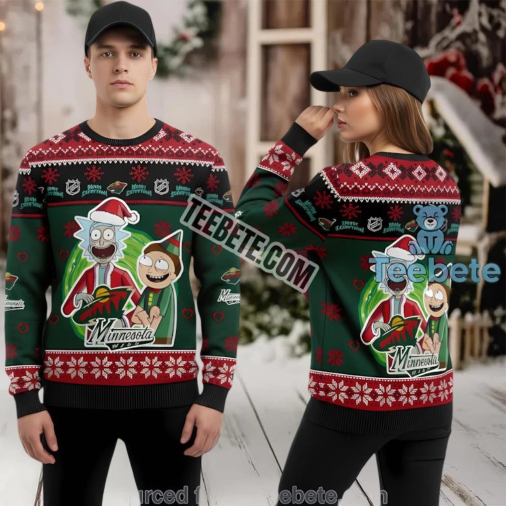 Get ready to show off your love for the Minnesota Wild and Rick and Morty this holiday season with this crazy Christmas sweater! This Rick And Morty Minnesota Wild Ugly Christmas Sweater is perfect for the fan who wants to show a little team spirit. Wear this to your next watch party!