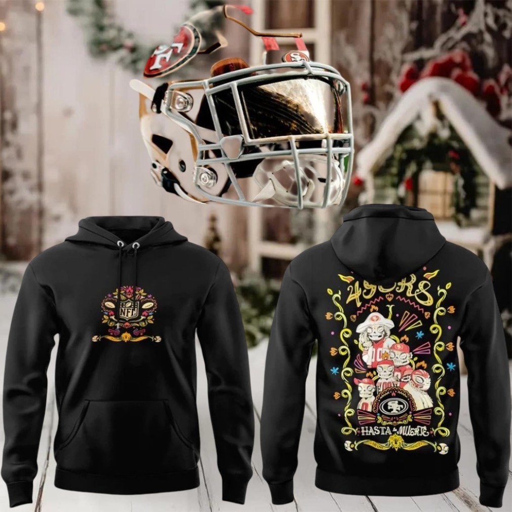 Declare your unwavering loyalty to the San Francisco 49ers with this “Hasta La Muerte” (Until Death) hoodie shirt! This two-sided design embodies the passion and dedication of a true 49ers fan. It’s not just a hoodie; it’s a statement of undying support for your team. Perfect for die-hard Niner Faithful!