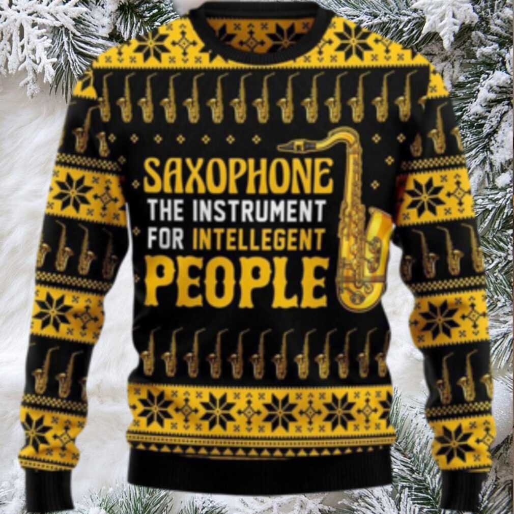 Unleash your inner musician this holiday season with the Saxophone The Instrument For Intellegent People Ugly Christmas Sweater! Perfect for saxophone players and music lovers with a sense of humor, this sweater lets you showcase your passion in a delightfully unconventional way. Imagine turning heads at your next holiday party or family gathering with this eye-catching conversation starter! This sweater is not just clothing; it’s a declaration of your unique interests and festive spirit, proving that music makes you smarter!
