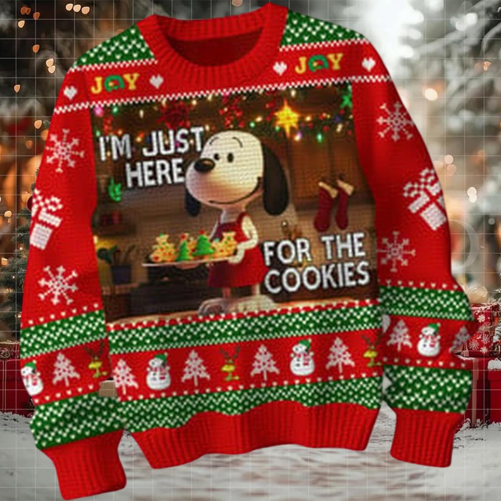 Declare your holiday priorities with this hilarious Snoopy “I’m Just Here For The Cookies” Christmas Ugly Sweater! This festive sweater combines the beloved Peanuts character with a relatable message for anyone who loves Christmas cookies. Imagine the laughter and nods of agreement as you sport this sweater at your next holiday gathering. It’s the perfect way to express your sweet tooth and spread some holiday cheer. Get ready to indulge in cookies and compliments with this unique and playful sweater!